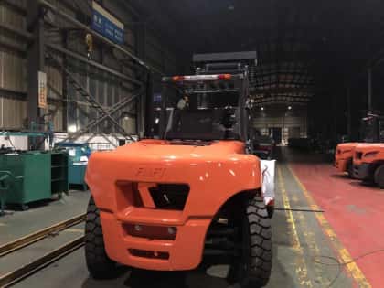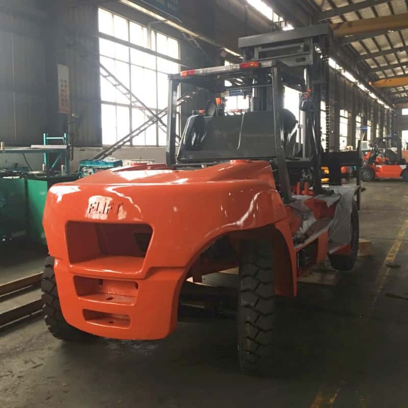 - 10 Ton Diesel Forklift commands the loading dock, its diesel engine growling as it hoists massive loads with unwavering strength and agility.