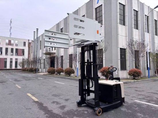 FLIFT developed a Non Standard Customized Electric Reach Truck equipped with an advanced cardboard clamp attachment