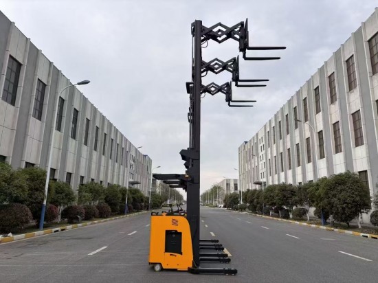 A double scissors reach truck, also known as a double deep reach forklift, is designed to extend its forks much farther than traditional reach trucks.