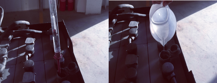 5、Check the electrolyte level. If the level does not reach the overflow baffle or top of the partition, it should be added with deionized water or distilled water.