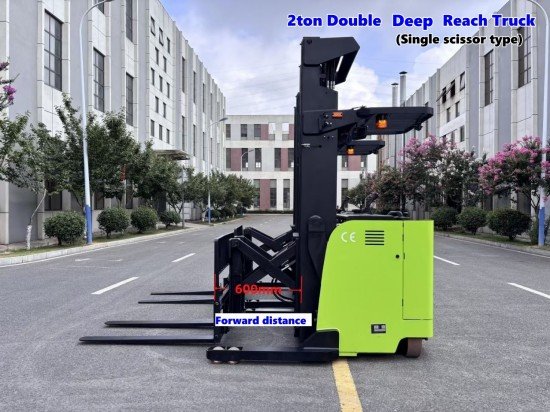 The single scissor type reach truck forward distance only 600mm. Due to the single scissor desgin structure.